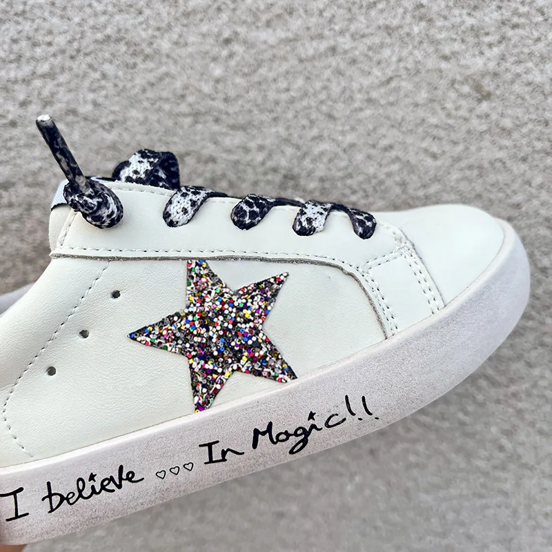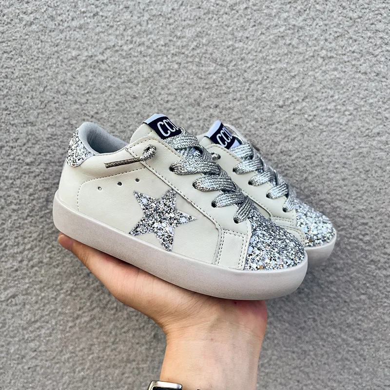 New Arrival Fashion Girls Cartoon Sequined Running Shoes Pu Leather Casual Shoes Glitter Star Children's Sports Shoes